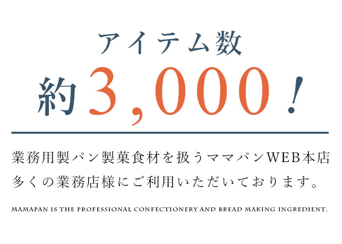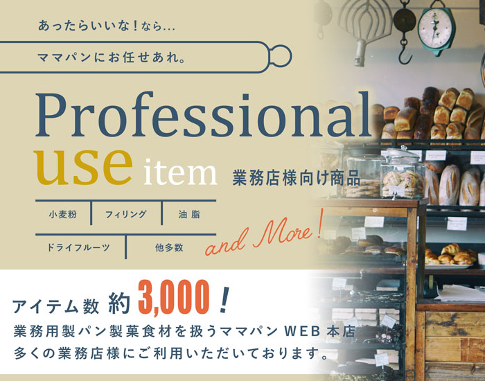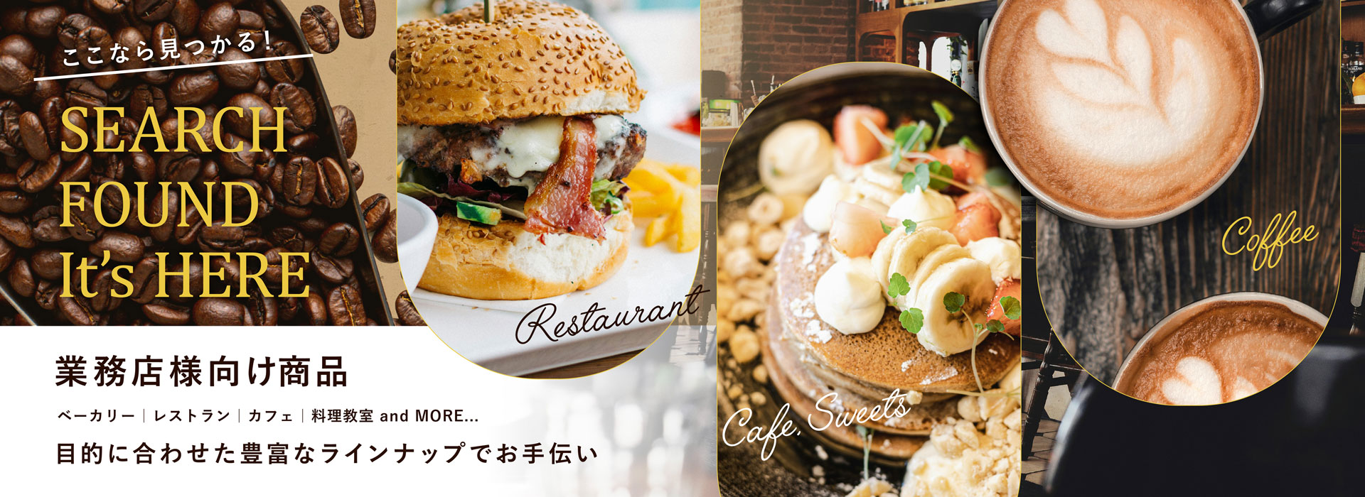 これらの食材はパン・洋菓子・和菓子・お料理等、幅広いジャンルの業務店様がご使用になられ、商品ジャンルも多岐にわたります。