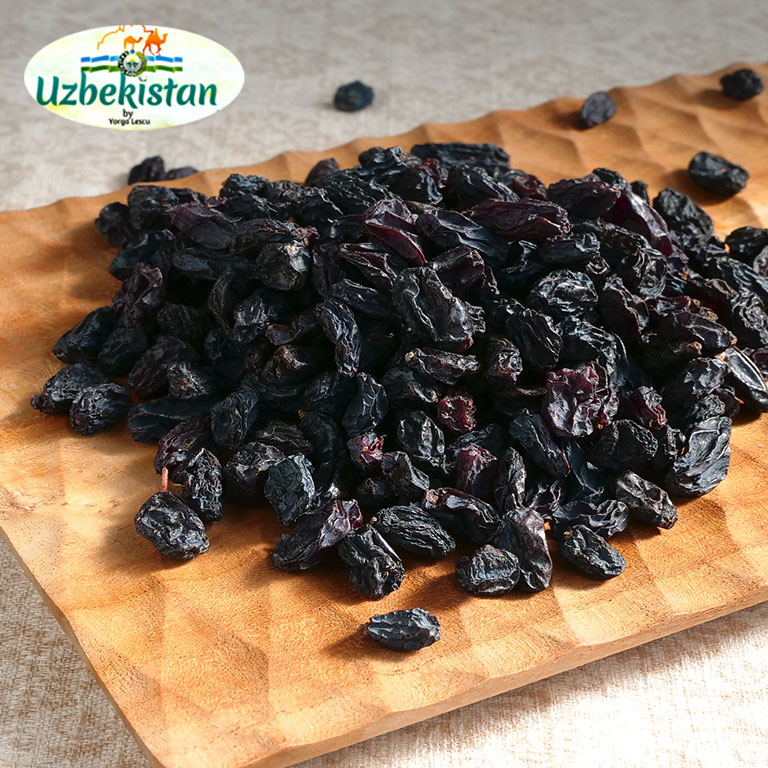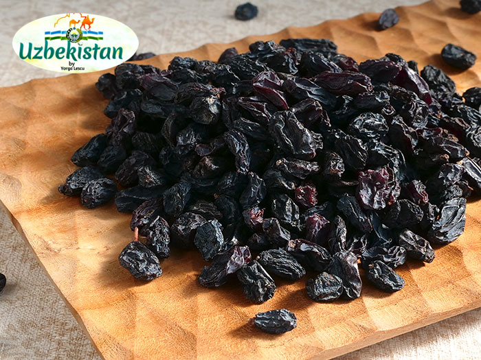 ウズベキスタン特有の希少なぶどう品種「黒キシミシュ」を天日干しにして乾燥させたレーズンです。