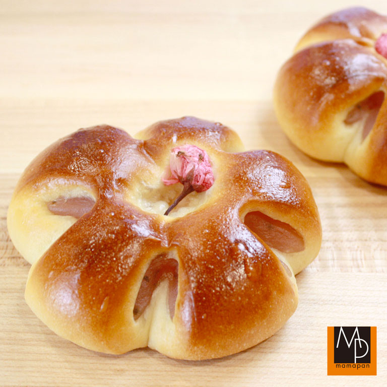 とてもきれいなピンク色です。餡を表に出して焼くことで、見た目にも春を感じるパンが作れます。また、ホイップクリームと組み合わせるのもオススメです。
