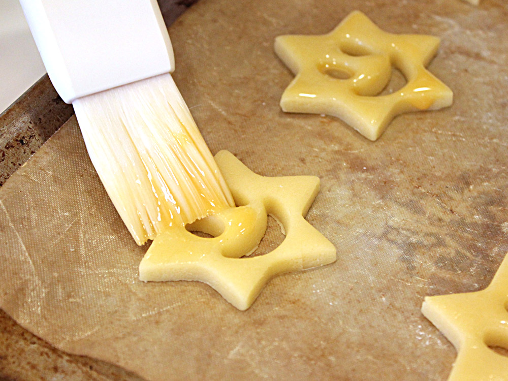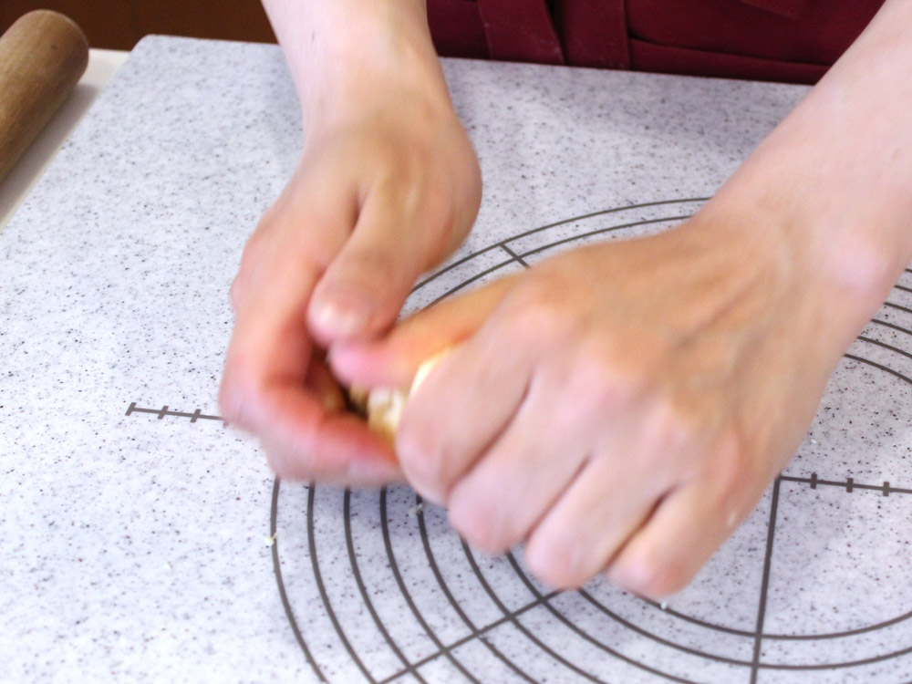 抜き型は持ってません。なので包丁でカットして焼成。見た目より味ですよね。